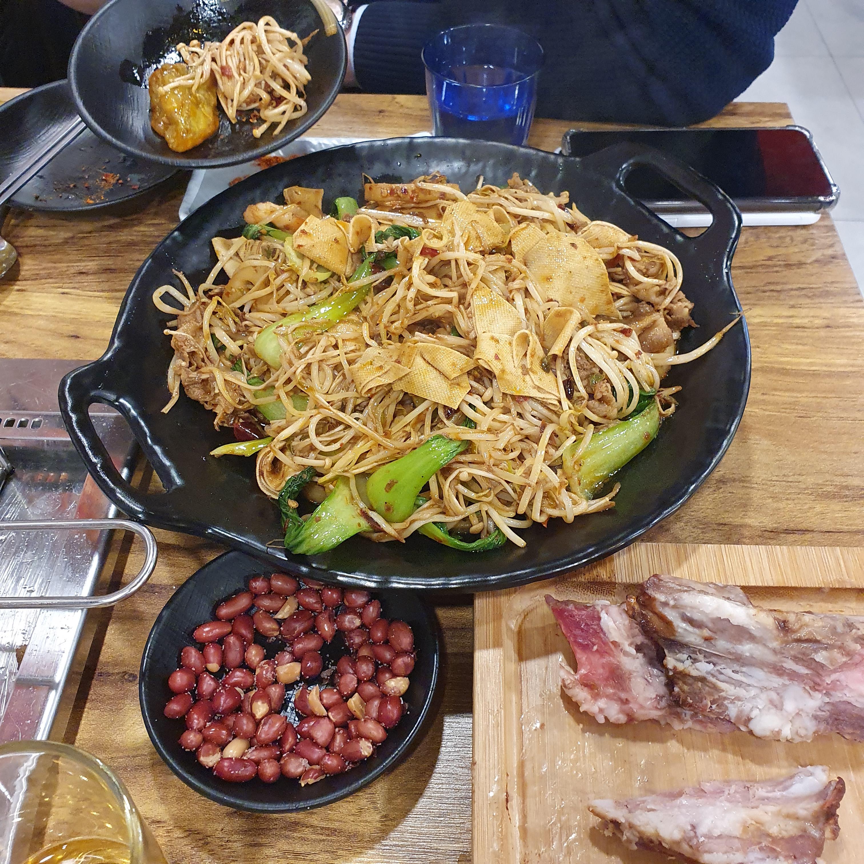 원래는 원기옥을 가려고 했는데 숯불숙성 통양갈비를 발견하고 급 텐텐양꼬치로 향했다.