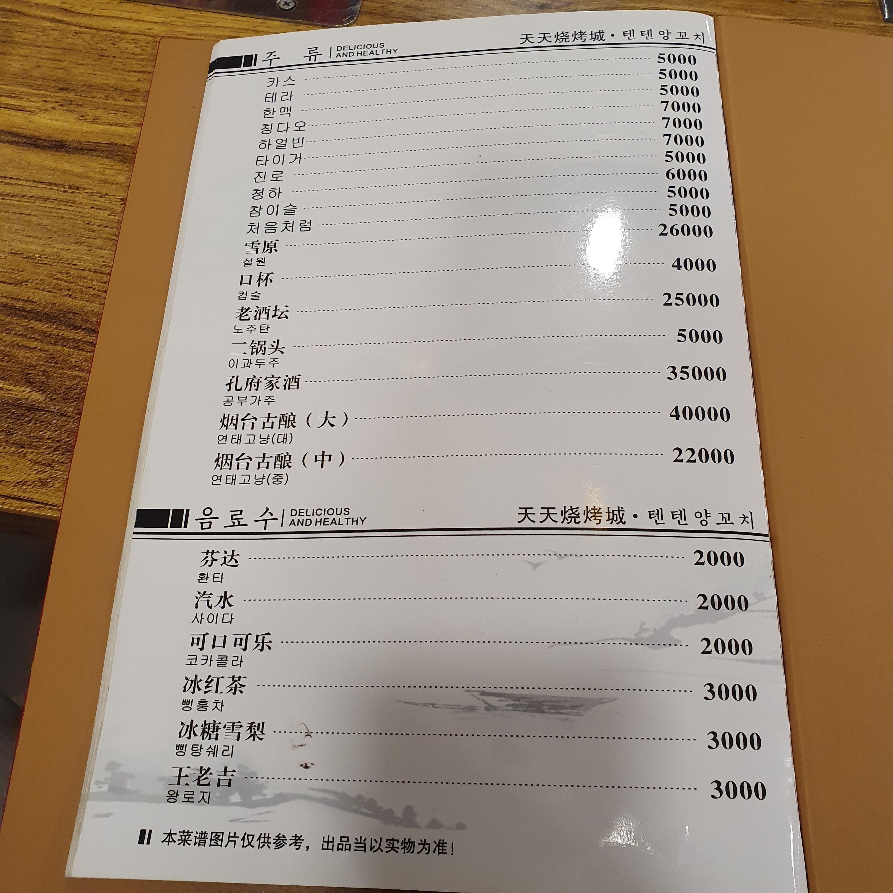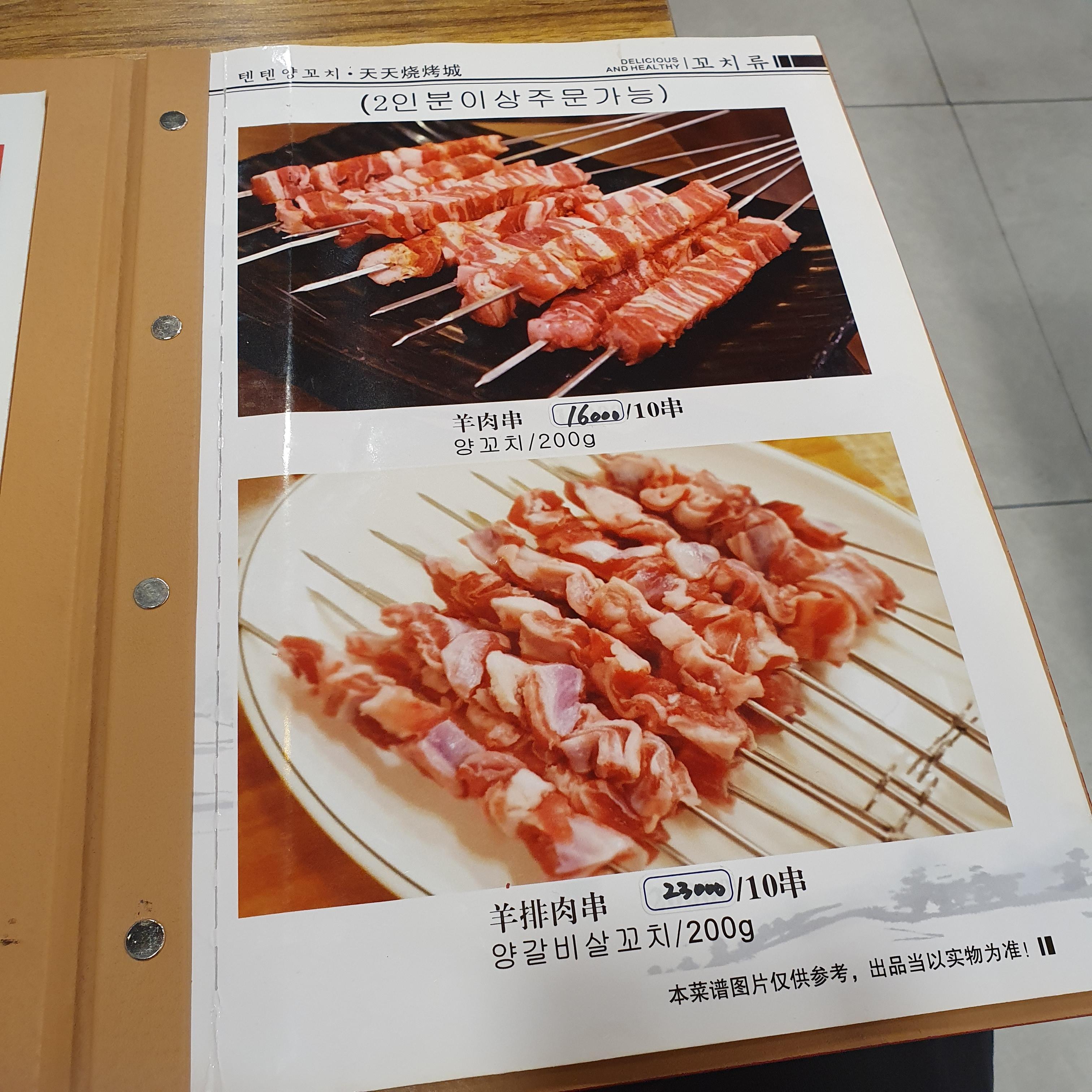 건대 자양동 양꼬치거리 텐텐양꼬치 주문메뉴
