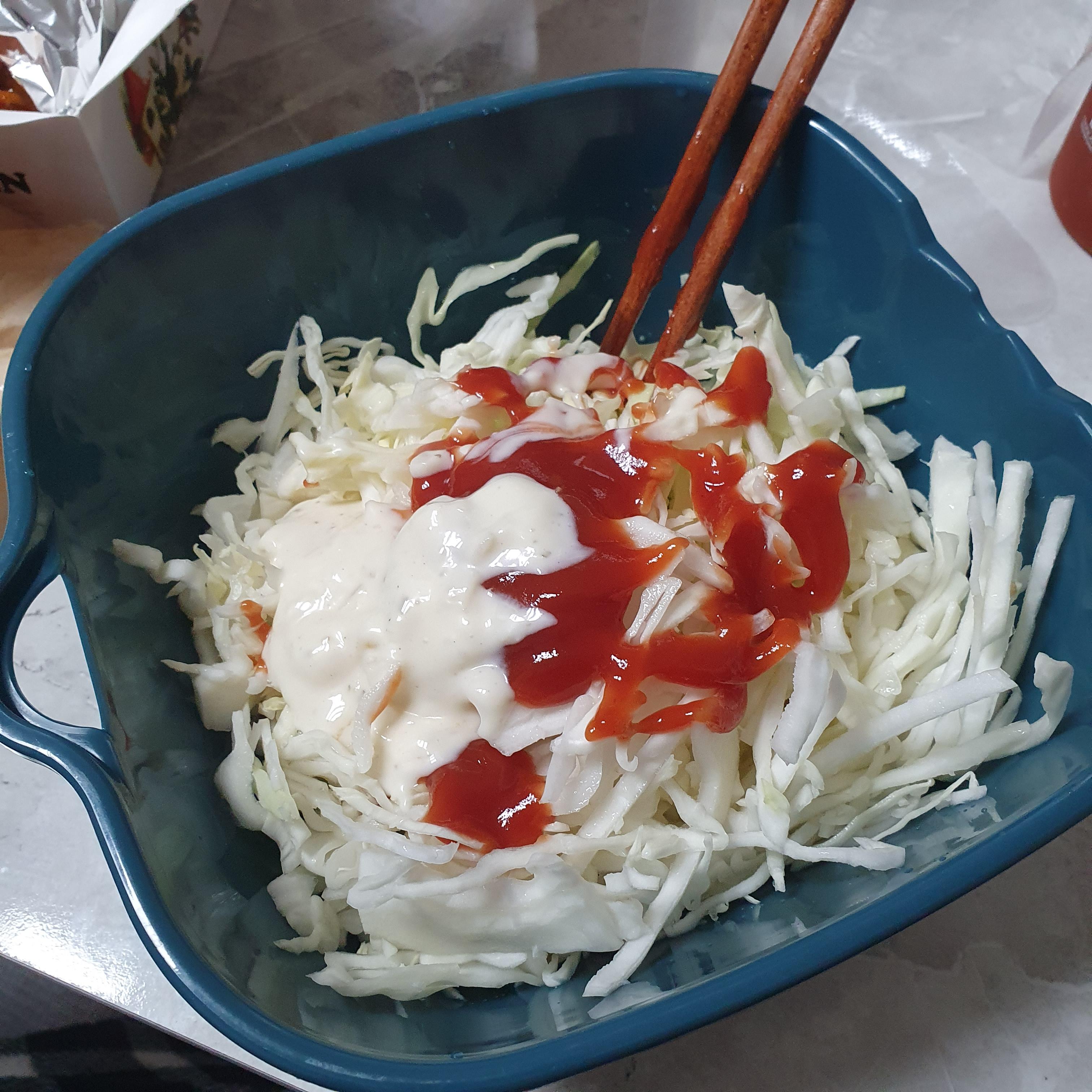치킨엔 당연히 양배추샐러드! 집에있는 양배추로 후딱 만들었다!