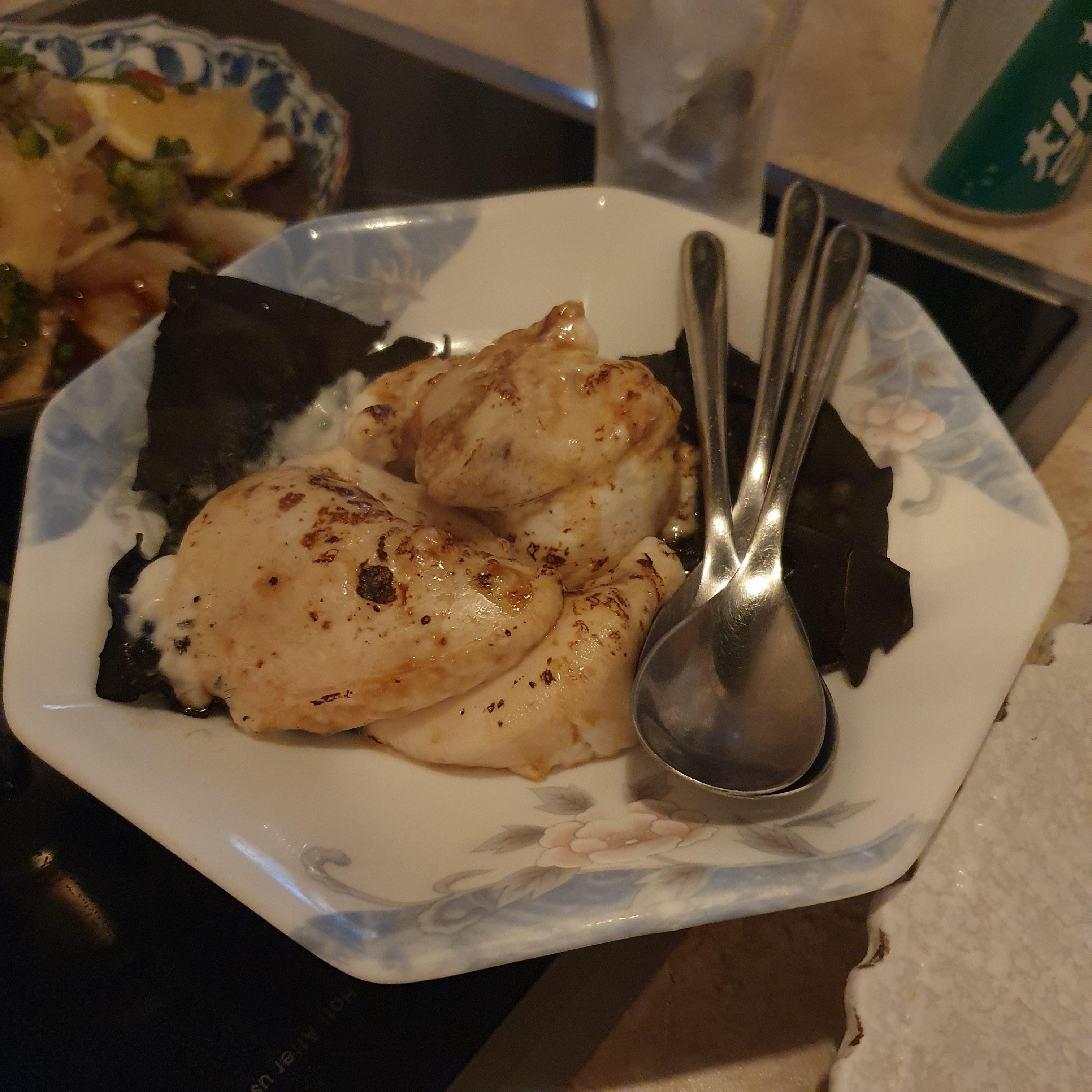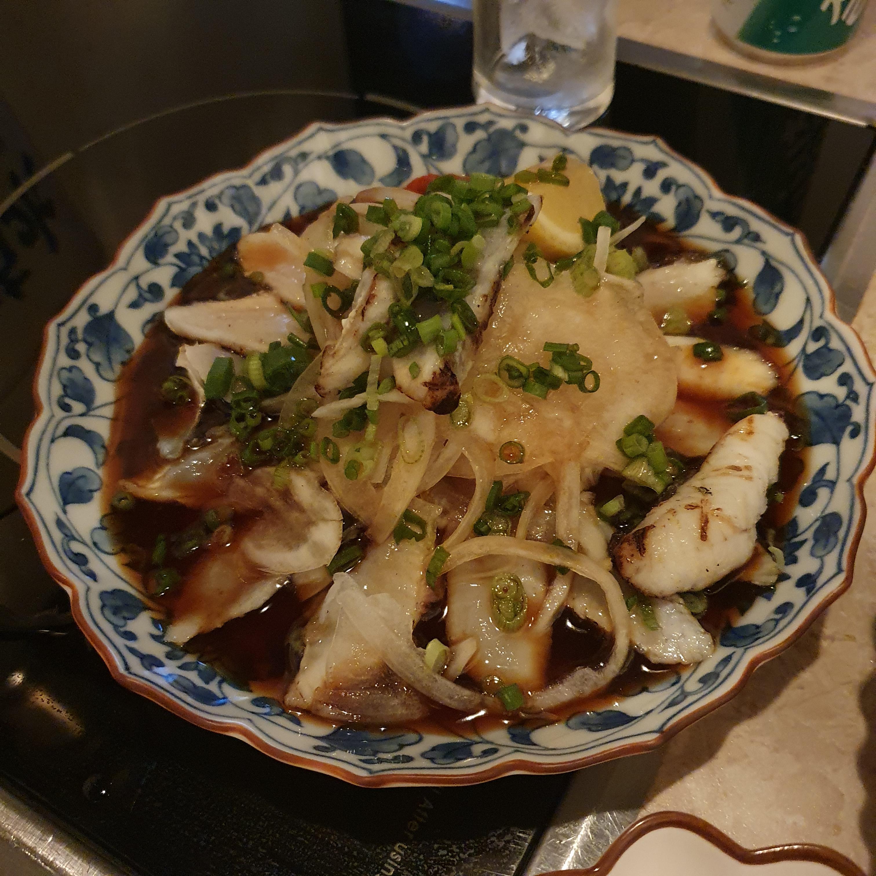 메뉴판에 있는 그냥 가와는 참복껍질을 폰즈소스에 무쳐나왔다! 빨간건 뭐지 다데기인가 했는데 무맛이 났다.