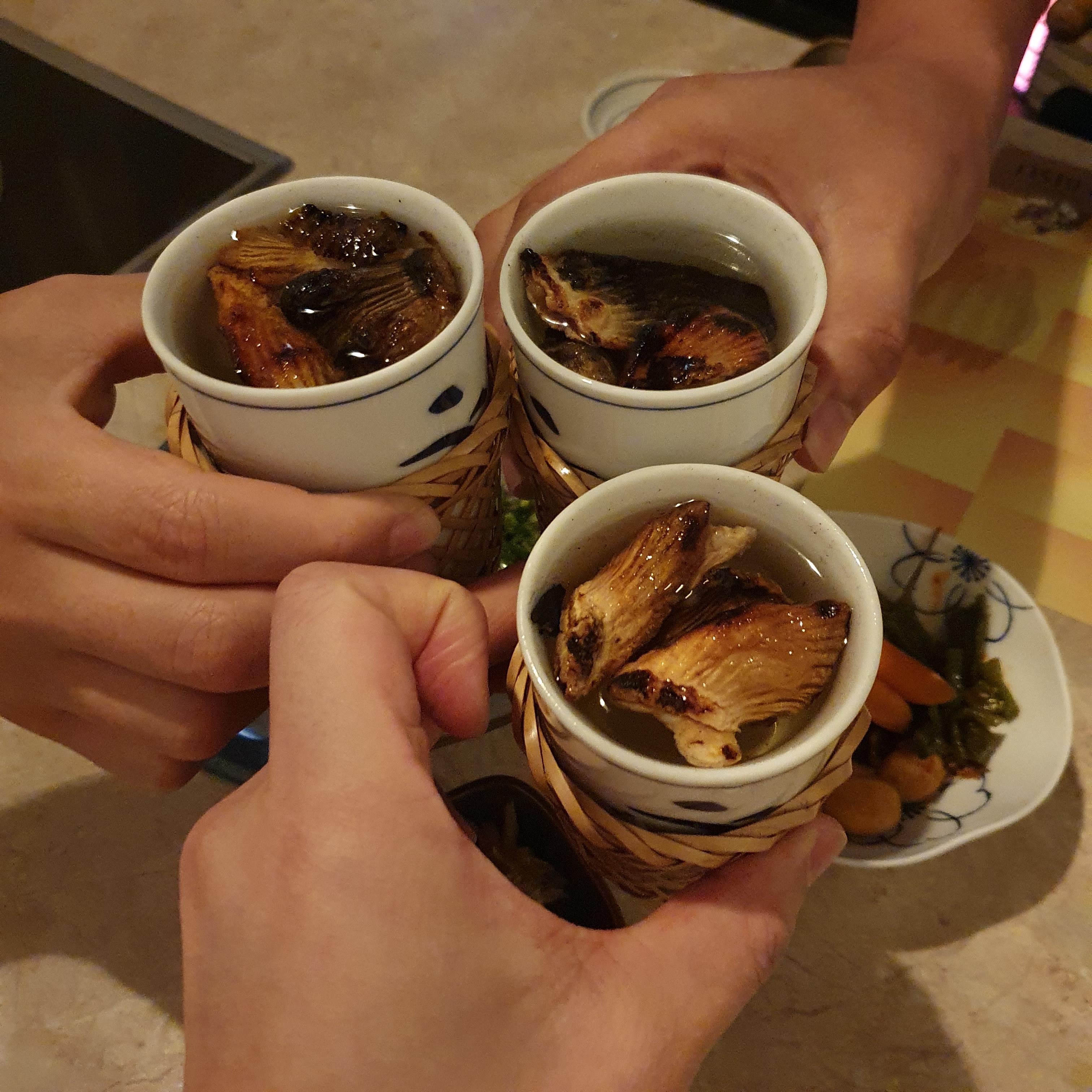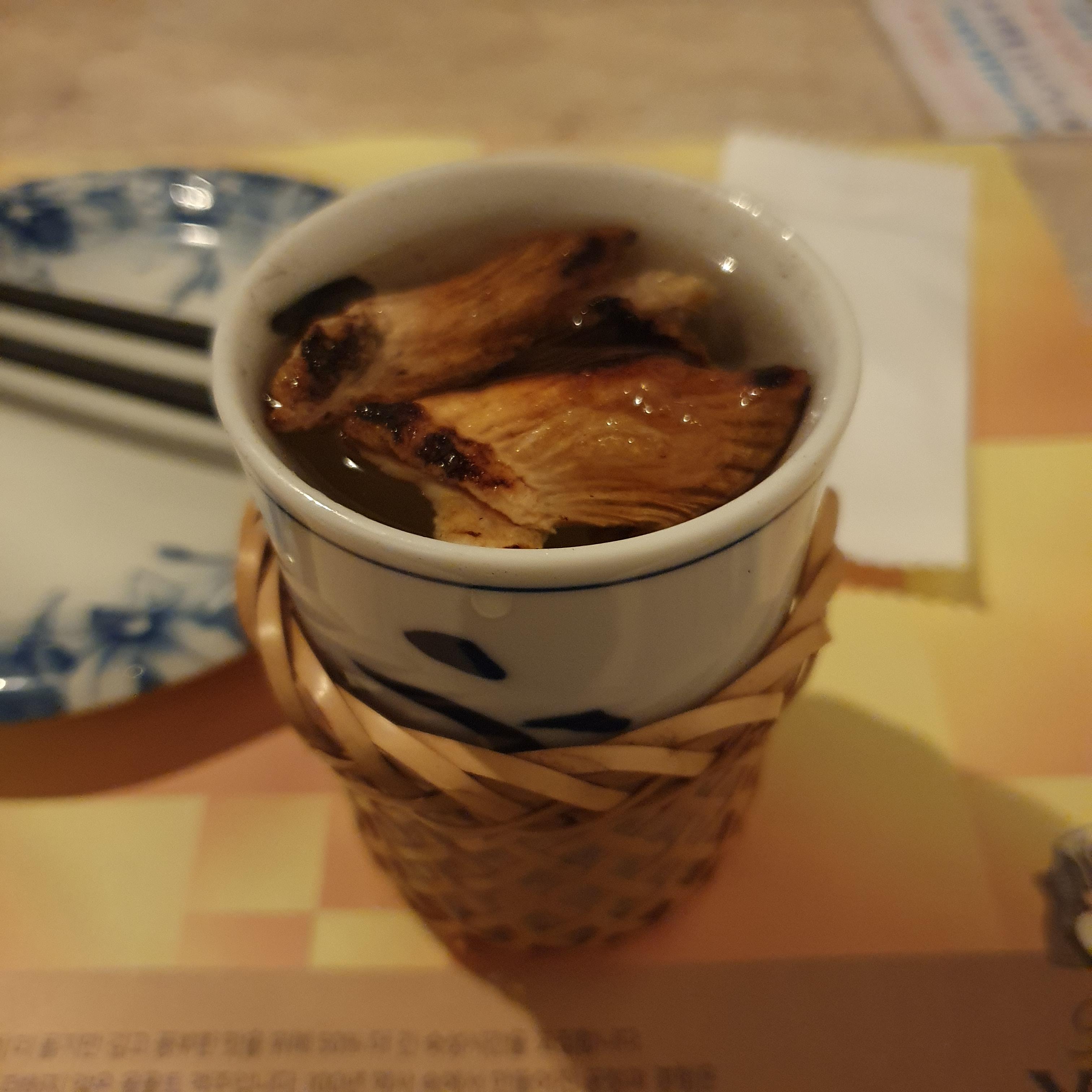 숏다리를 따뜻한 사케에 담궈 먹는 맛이다.