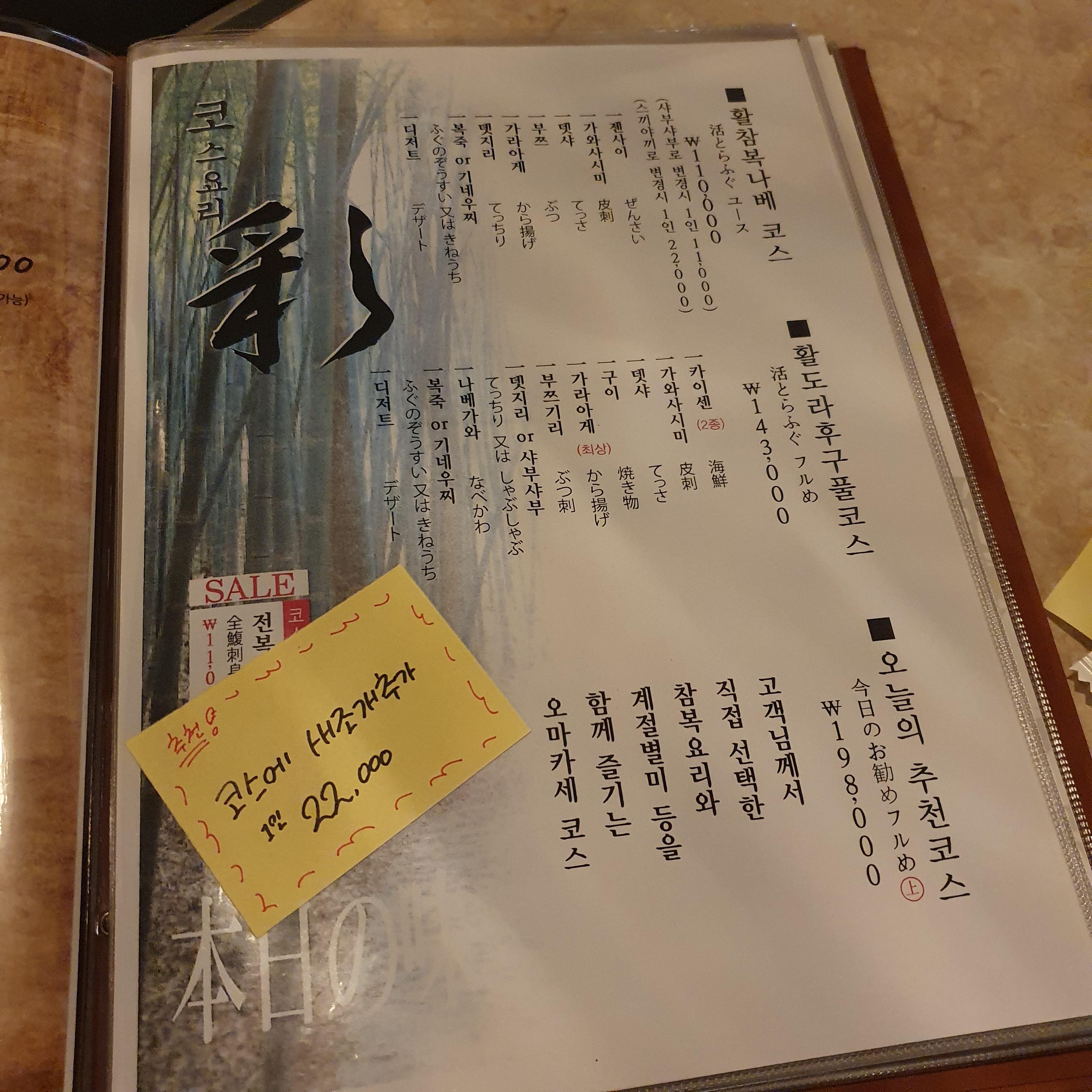 도산공원 복어맛집 후꾸장 도산점 주문메뉴