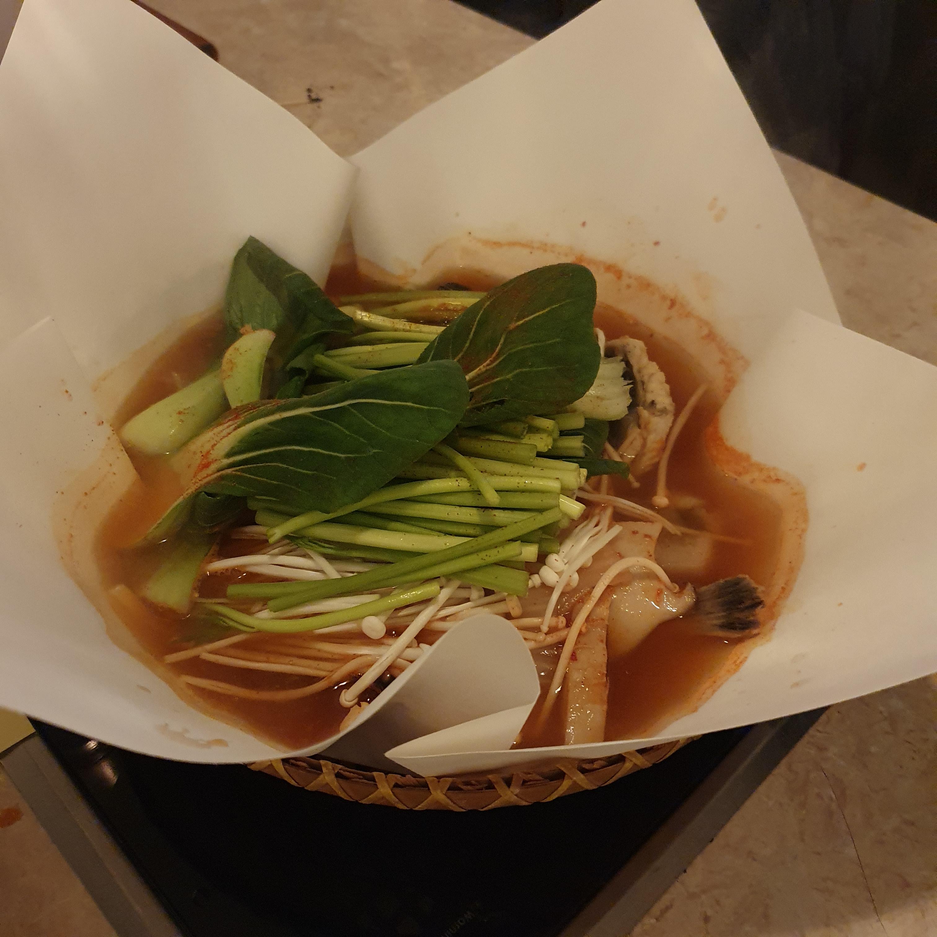 이어서 매운탕이 나왔다! 신기하게 종이에 감싸져 나왔다.