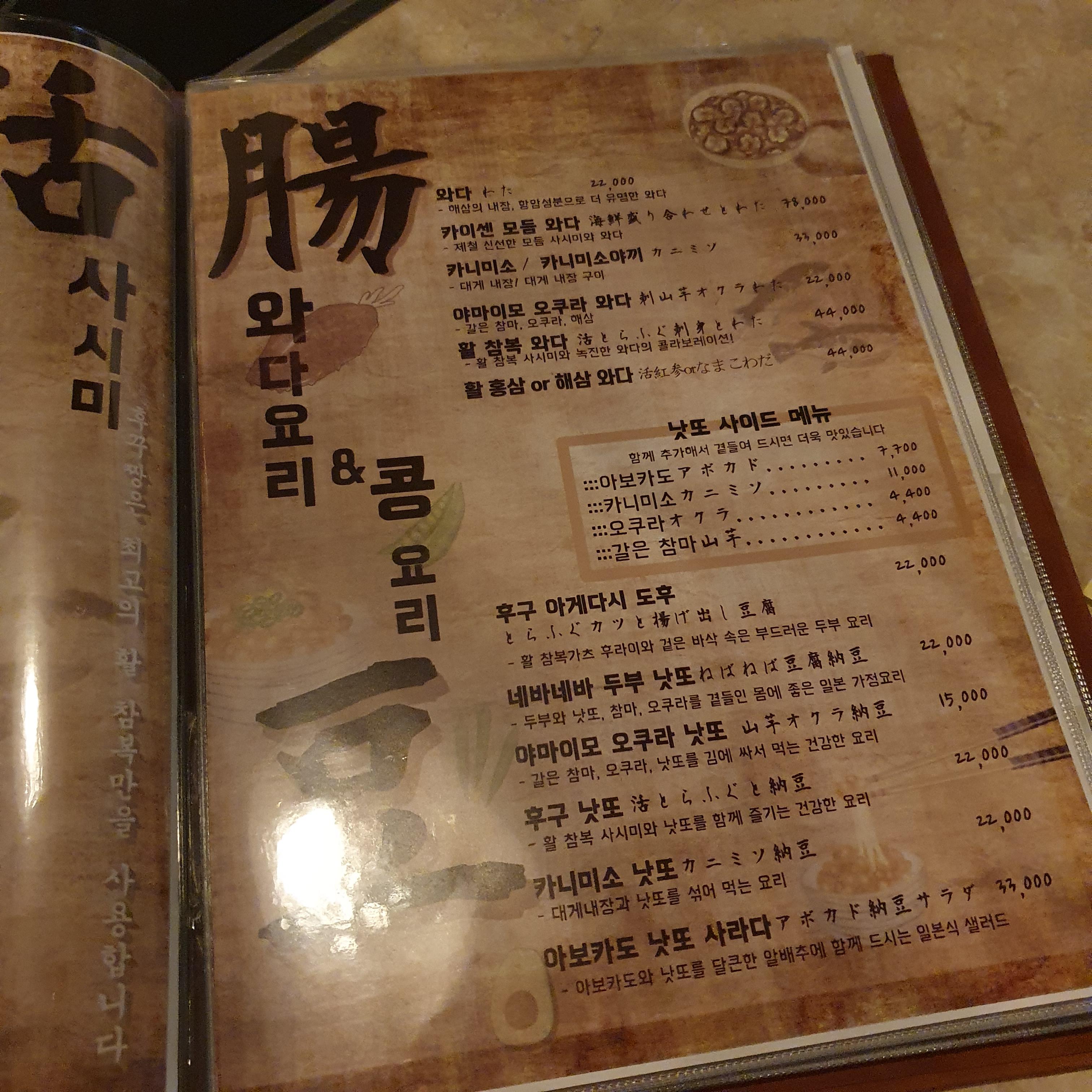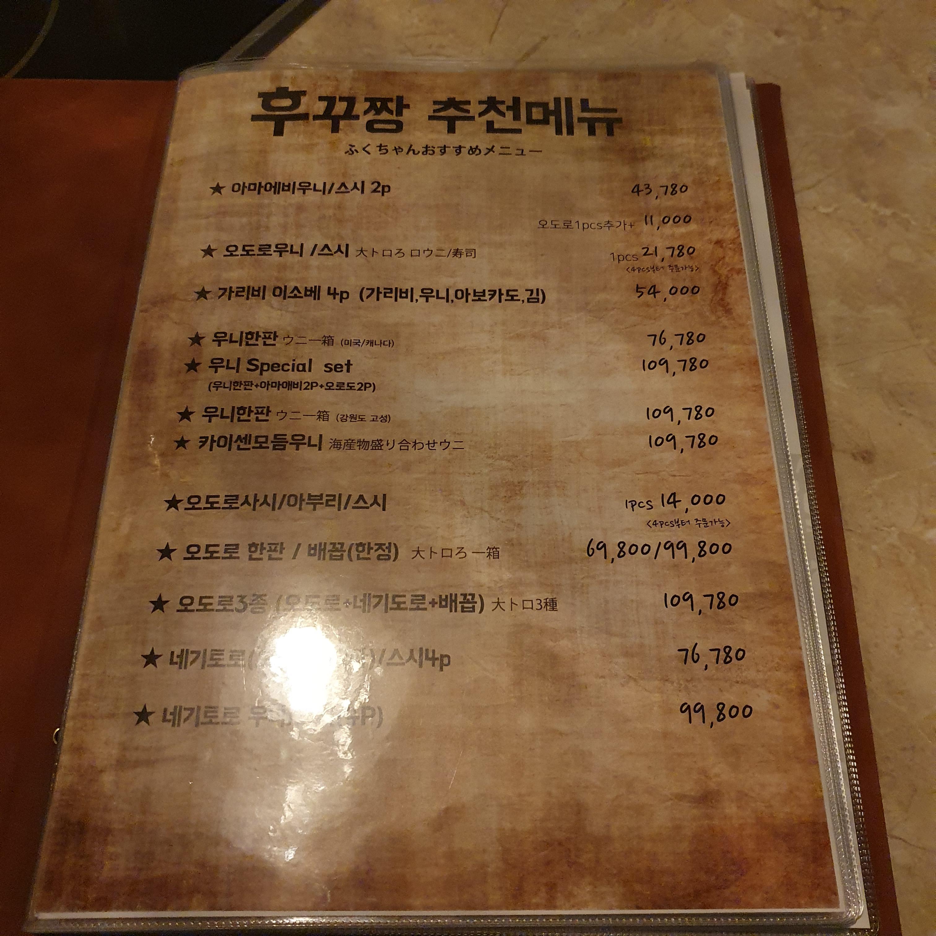 압구정 도산대로 맛집 후꾸장의 메뉴판이다.
