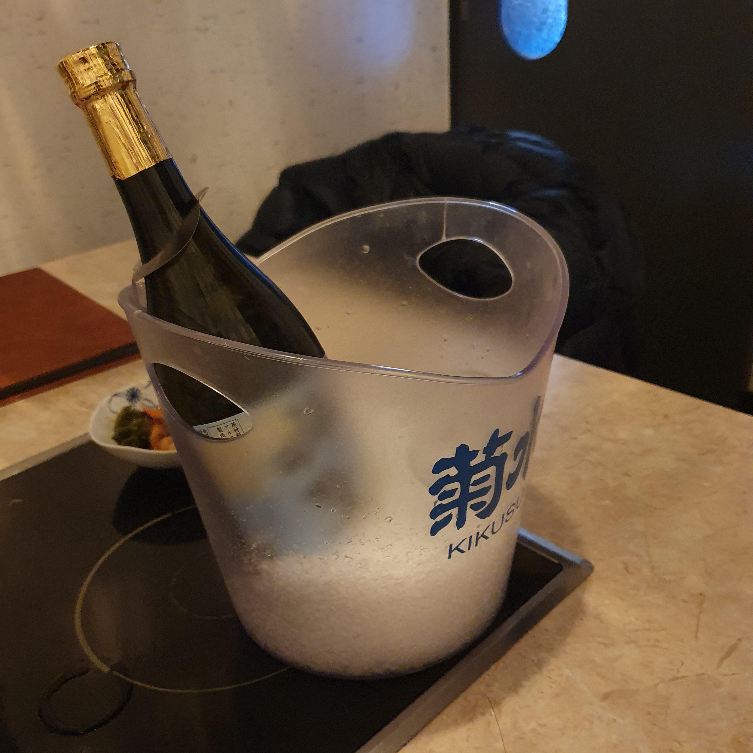한잔에 2만원씩 3잔에 6만원!!... 히레사케용 사케는 저렴한 월계관 준마이를 사용했다.