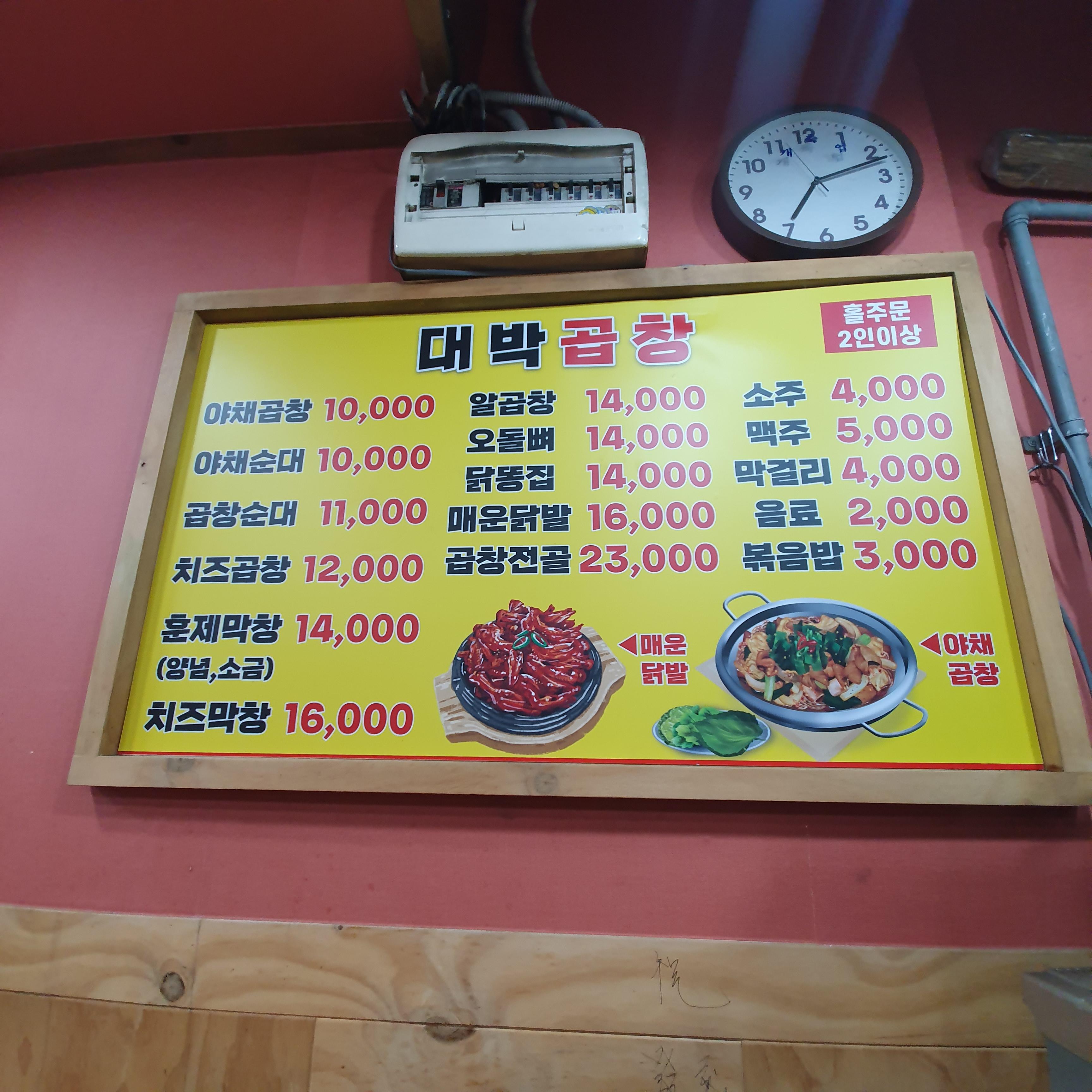 노룬산시장 곱창맛집 대박곱창 주문메뉴
