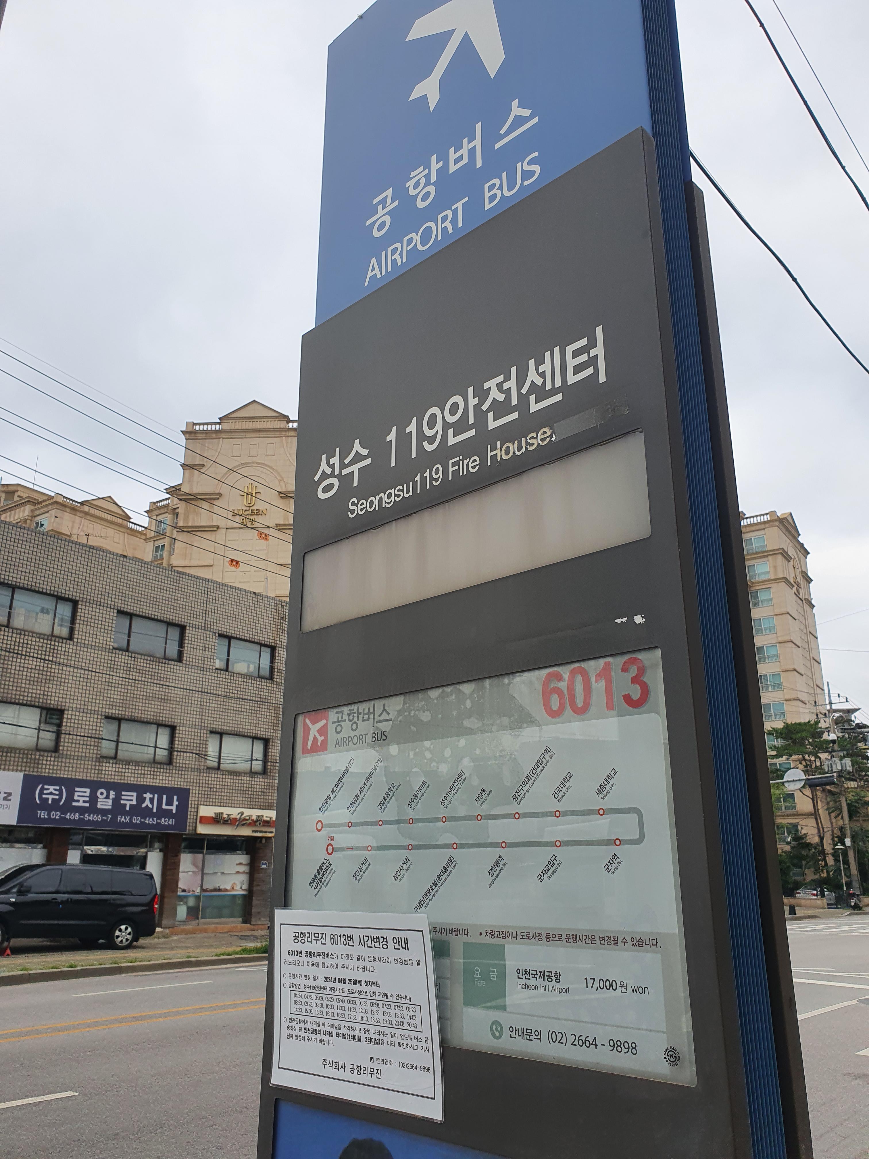 성수 119센터에서 6013번을 타고 인천공항 제2여객터미널로 가면된다.