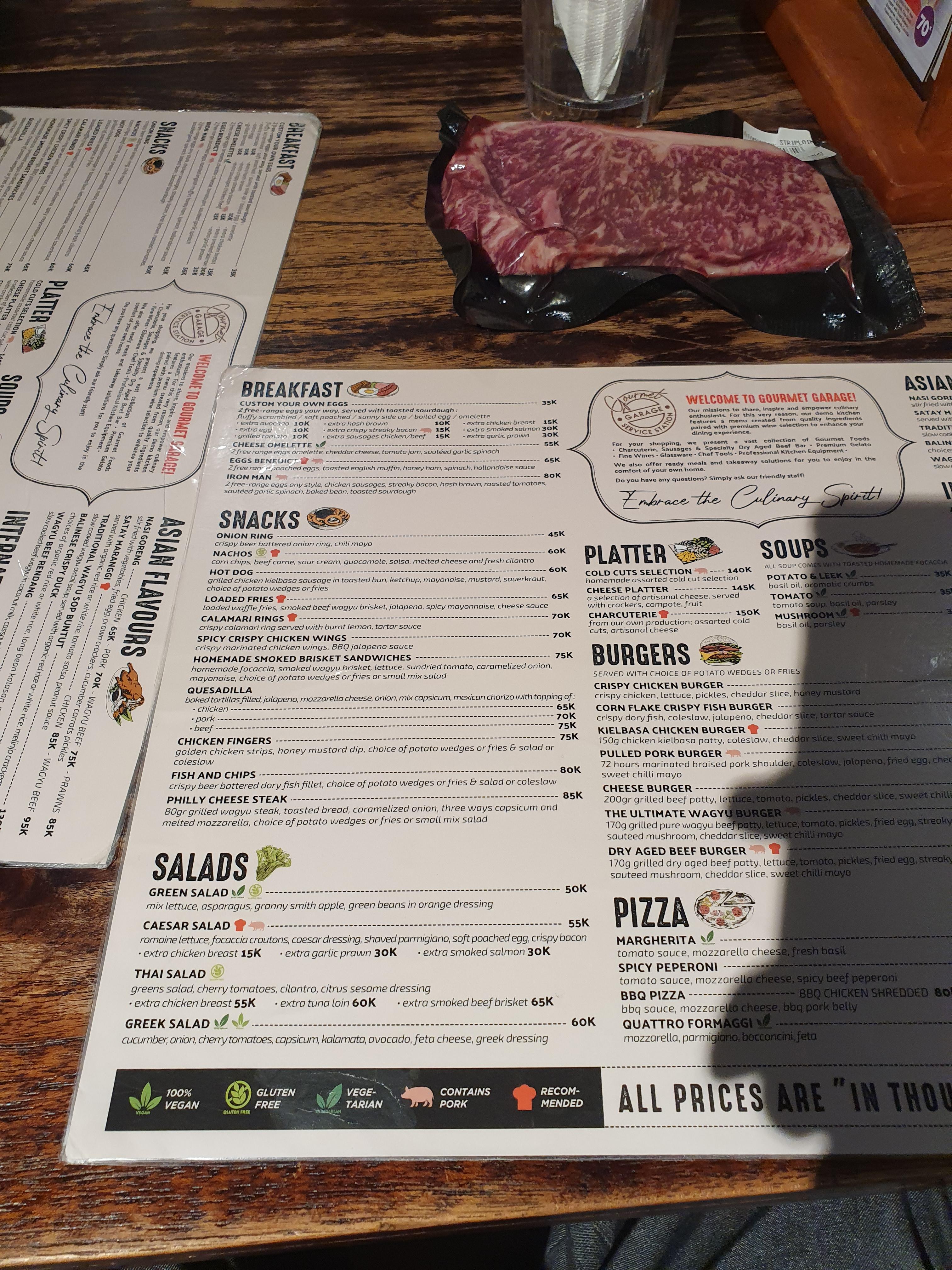 고메가라지는 드라이에이징스테이크도 있지만 피자,햄버거,파스타와 나시고랭같은 현지음식들도 있다.